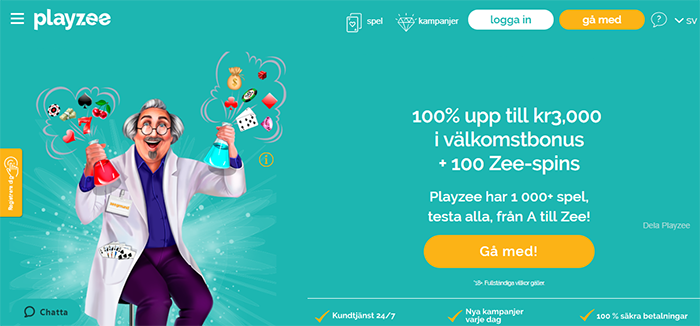 Det första som slår en då man landar på Playzee är portalens design och funktionalitet som direkt förmedlar att detta är ett onlinecasino av klass där krut lagts på att skapa en kombination av stort innehållsvärde, samtidigt som det inte skall vara för spretande och hållas stilrent. Temat är tydligt; att här skall vi guidas av ett proffs som kan casino oavsett om det är slots, bordsspel eller videopoker, och det är nästan en regel för onlinecasino som valt en tydlig maskot att här händer mycket i form av olika erbjudanden besökare kan ta del av.